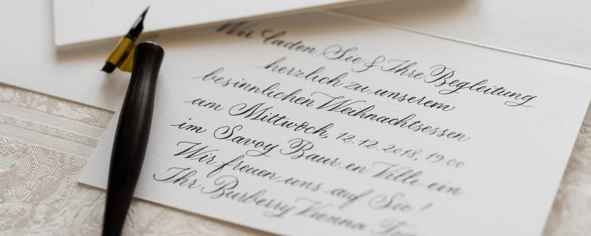 Soll ein erworbenes Produkt personalisiert werden oder dürfen sich Ihre Kunden sich Ihren eigenen Text auf einer schönen Karte wünschen? All das ist mit Event-Kalligraphie möglich.