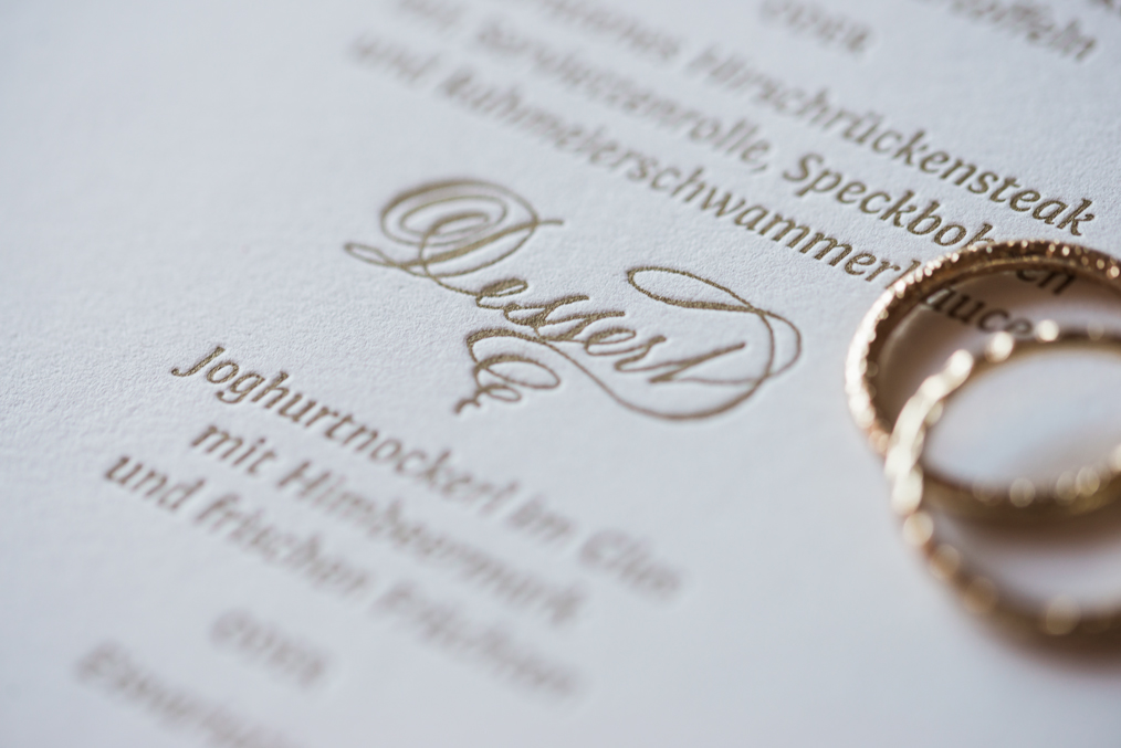 - Gedruckte Karten (z.B. Save the Date, Einladungen, Menü …)