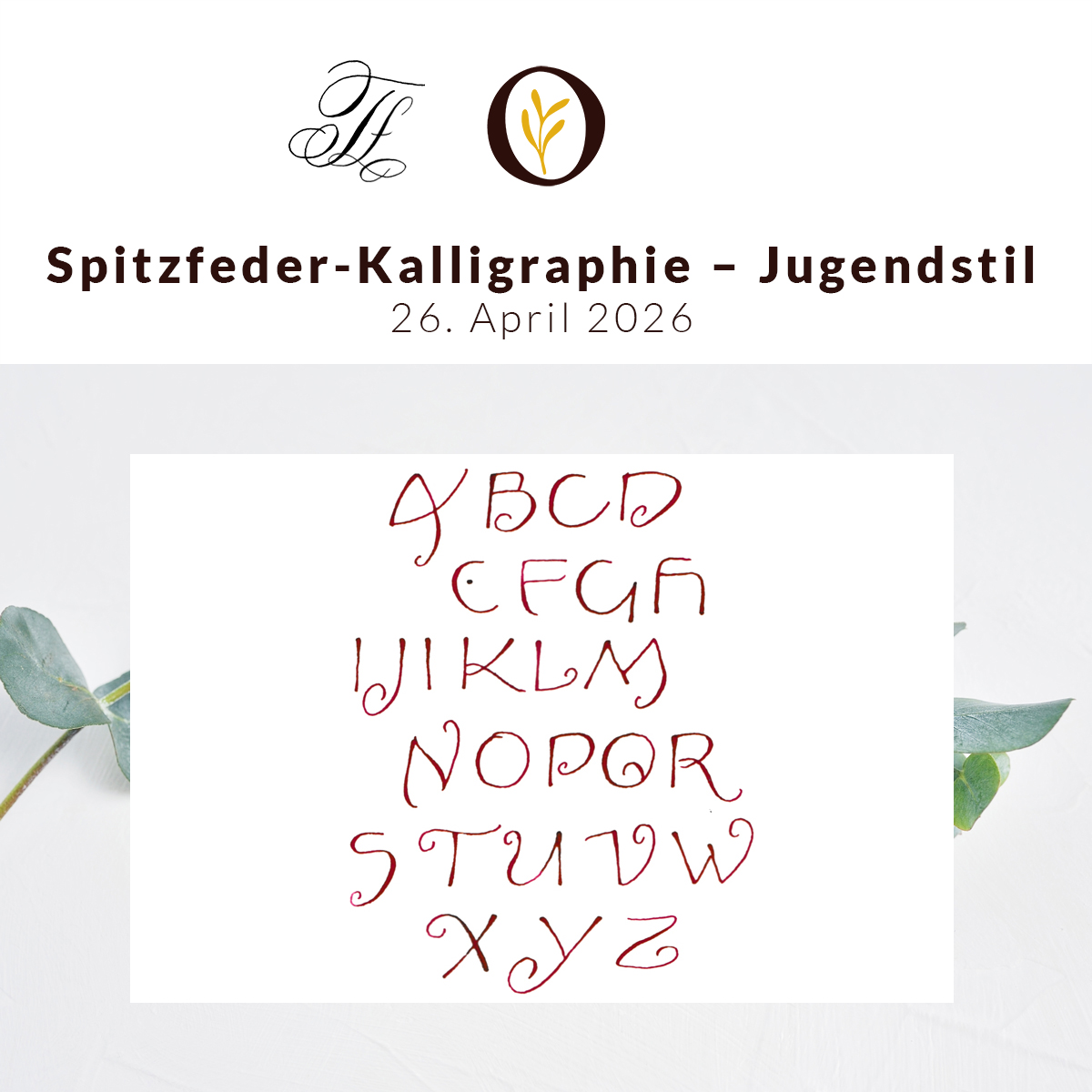 Die Spitzfeder ist ein wunderbares Werkzeug, mit der man die unterschiedlichsten Schriftarten umsetzen kann. Im Workshop am Sonntag, 31. Mai 2026 zeigen wir dir, was die Spitzfeder alles kann und wie man sie für Jugendstil/Art Nouveau nutzt.
