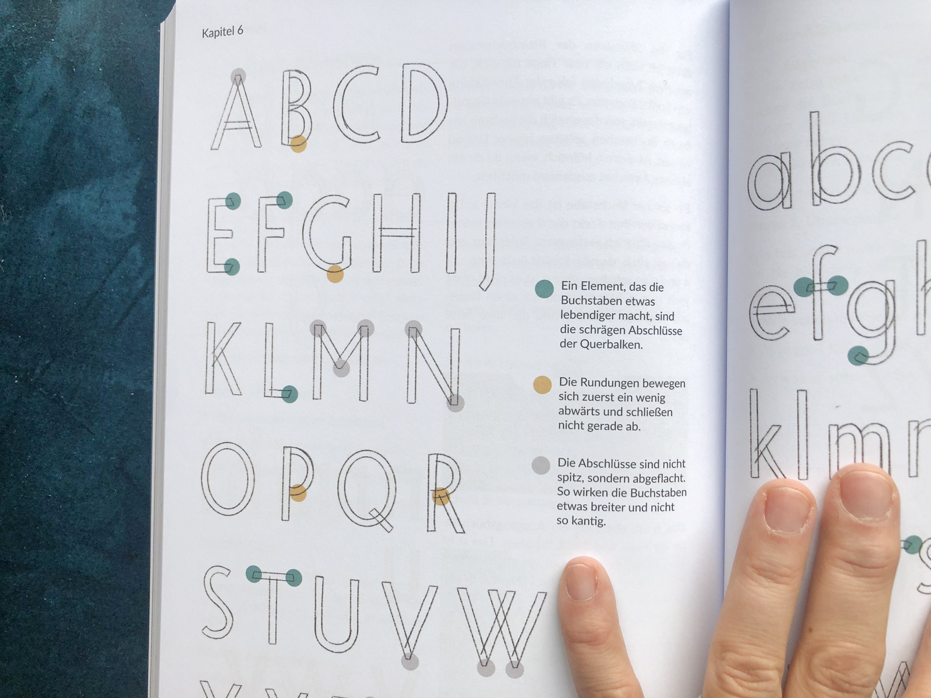 Auch das Thema Handlettering kommt im Buch nicht zu kurz – ich stelle dir die verschiedenen Methoden vor, mit denen du zu schönen Schriftzügen kommst. Ob du gerne kalligraphisch vorschreibst oder technisch konstruierst, ich stelle dir verschiedene Zugangsweisen vor, so dass du deine eigene Methode finden kannst.