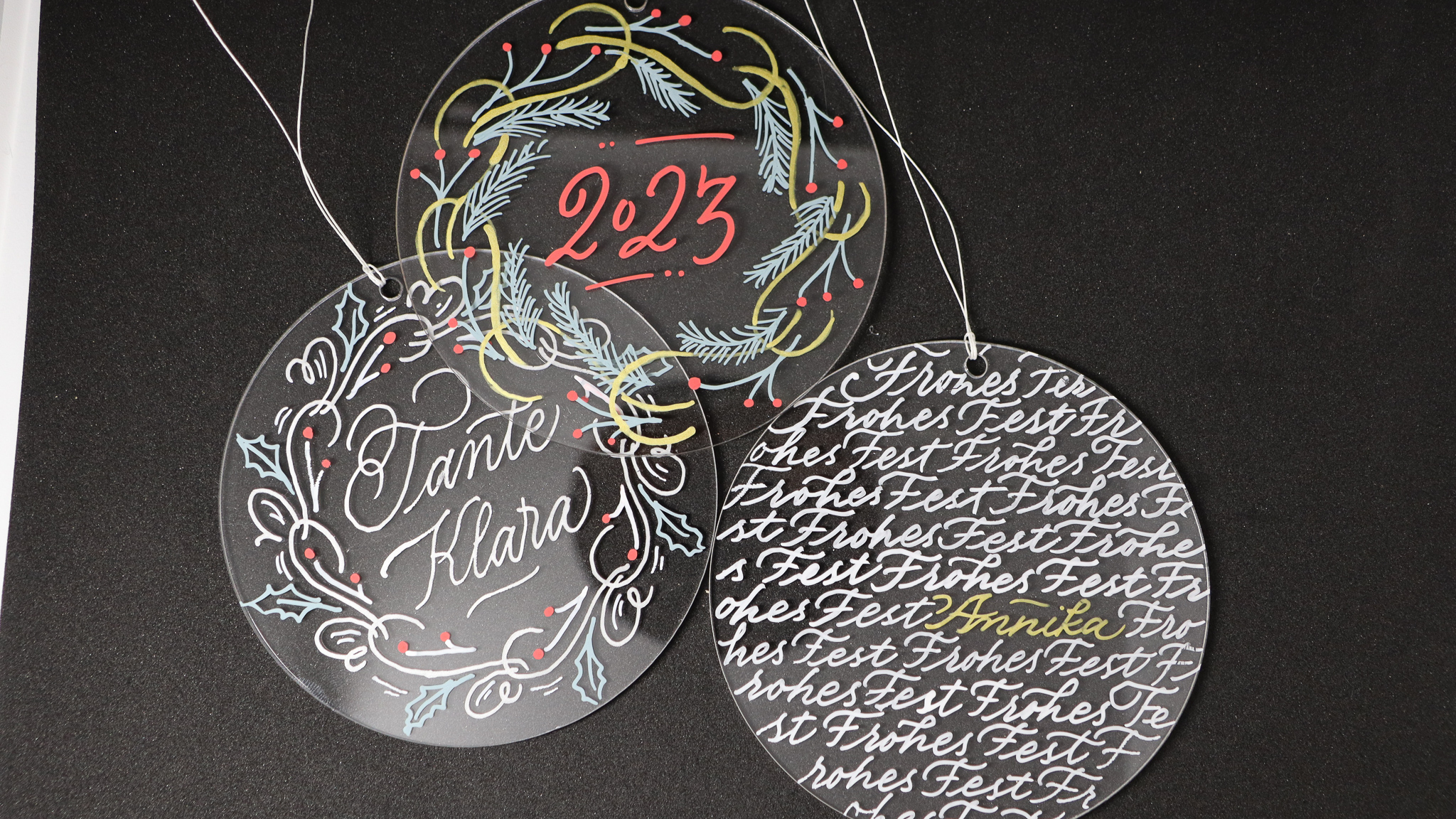 Personalisierte Acrylscheiben für Weihnachtsbaum und Geschenke