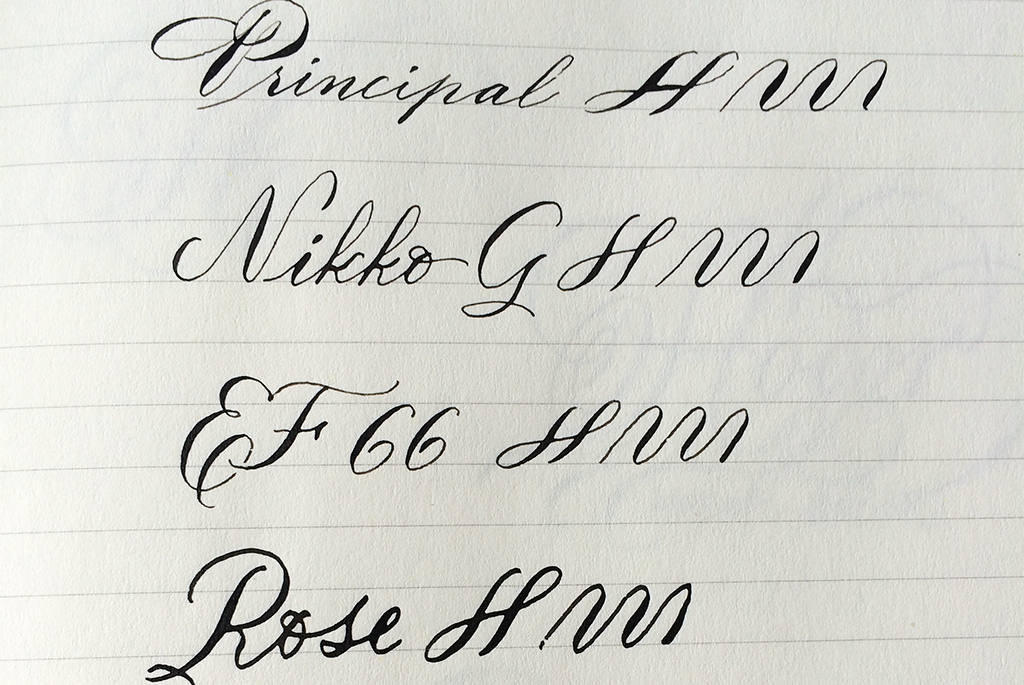 - Feine, härtere Feder (Nikko G): Auch hier sind die Aufstriche noch recht kratzig. Dadurch, dass die Feder aber härter ist, geht es schon viel besser.